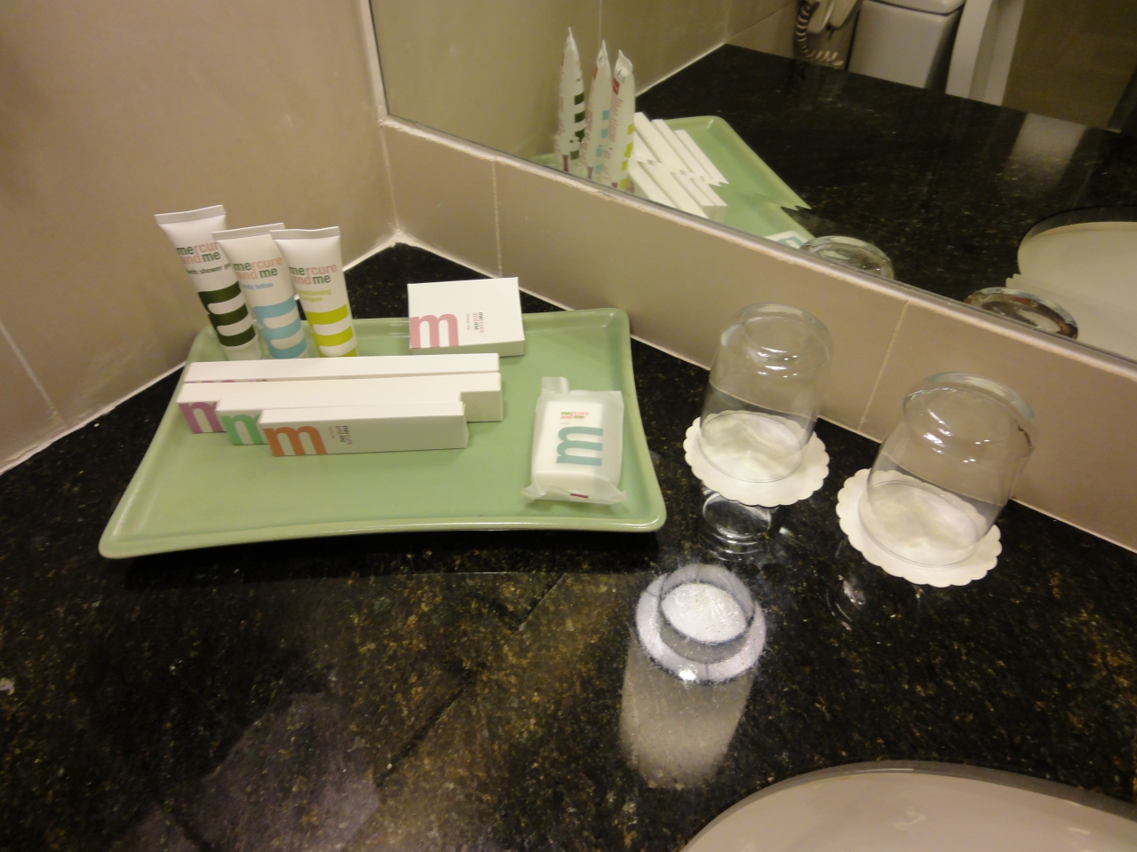 お水は飲めますとシンクに書いてあり、無料のお水のペットボトルはない。TVはLG製40インチ。NHKは入る。アイロンとアイロン台、ティファールのような湯沸かしポット、長めのコップとマグカップ、ワッフル生地のバスローブ、金庫は有ったが暗証番号だけでは閉まらず。カードを通す部分もあるが、特に記載なく、1泊だけなので使用せず。