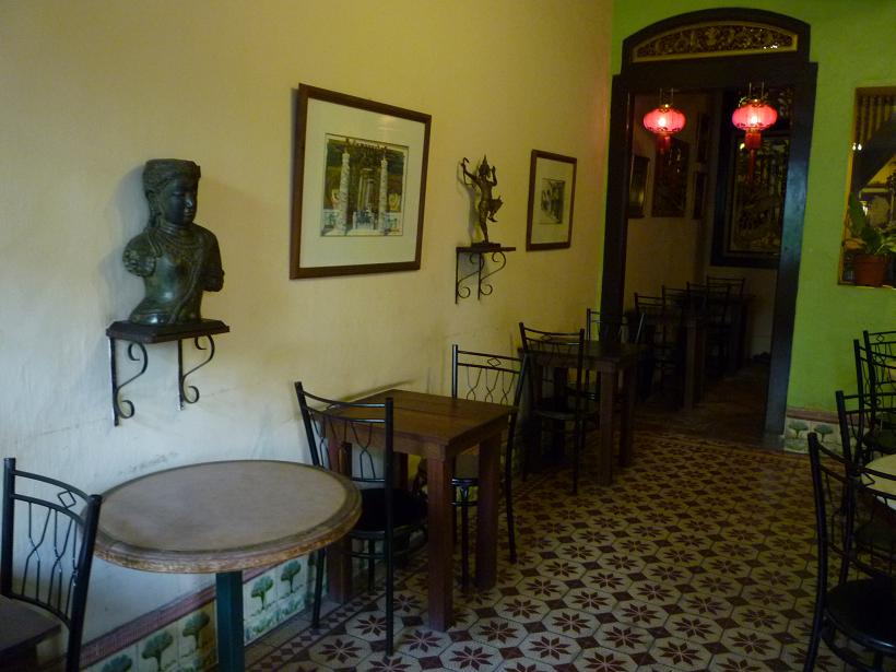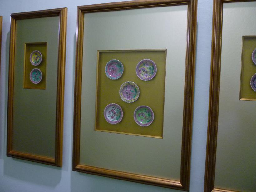 この宿は博物館「ババ・ニョニャ・ヘリテージ」と棟続きで、経営者も同じのようです。宿泊施設側にも室内にペラナカン文化を想像させる小道具や額に納められた小皿などが有って、ペラナカンの富裕層の生活ぶりを想像できる環境です。