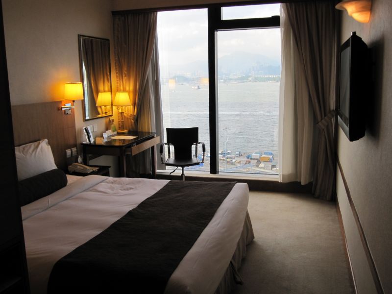 高層ホテルで、ほぼ半分は海側を面しているので、眺めは最高、客室もこぎれいなので、少々天気が悪ければ、ずっと客室に滞在して行きかう船を眺めるというのも。