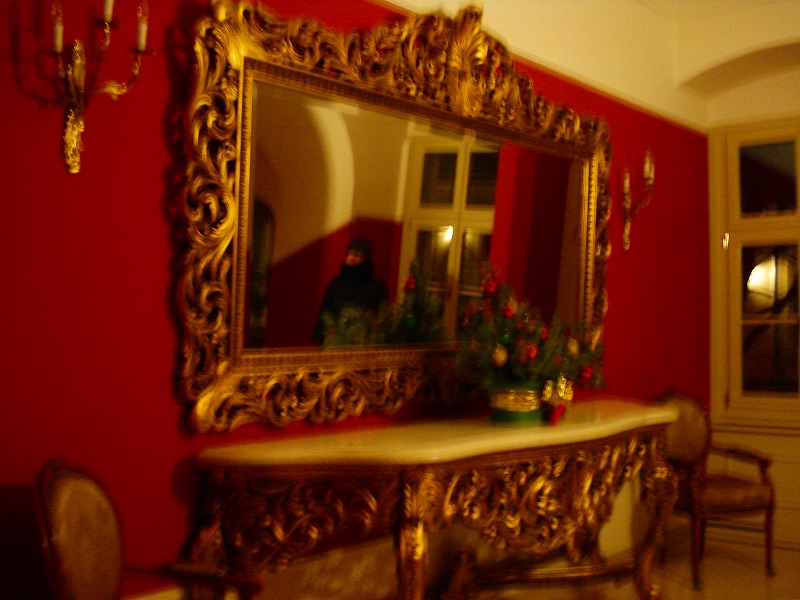 とにかく貴族!王宮に置いてそうな大きなキャビネットや、シャンデリア。暖炉も、ウィーンの王宮で見た白い磁器のようなものに金の縁取りがしてあるような豪華なものでした。かなり広く作られている廊下や階段。古さは全く感じないのに、伝統は感じることができます。鍵もいかにも御伽噺で出てくるようなもの。扉自体も大きく、ノブの位置も高いあたりがまた格調高い雰囲気をかもし出しています。