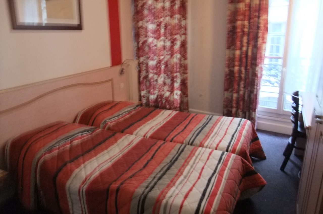 ベッドは、ヨーロッパのホテルなら当たり前なんでしょうが、くっついて並んでます。離す事ももちろん出来ますけどね。
