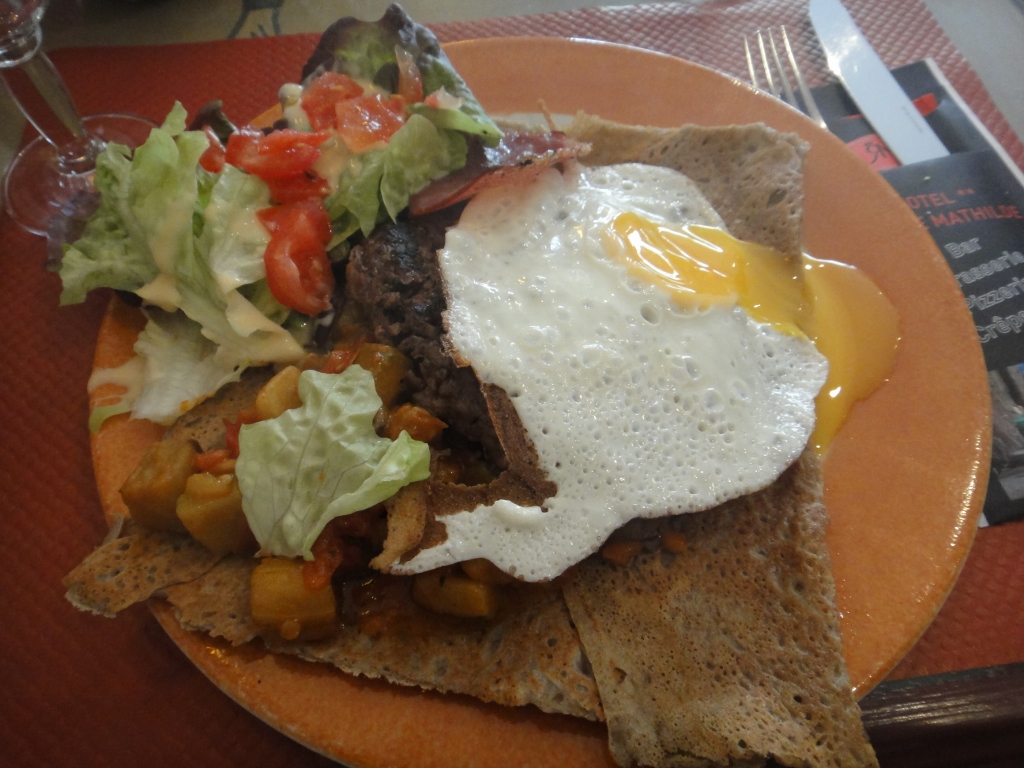 バイユーのタピスリー美術館近くにあります。一階がレストランになっていて、パスタやガレットなどを手軽に食べることが出来ます。昼食にハンバーグ(?)とラタトゥイユのお食事ガレットとポモー(りんごのお酒)を食べました。