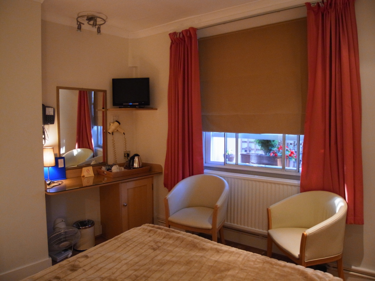 陽も当たるとのことで地下一階のお部屋でお願いしました。1泊£95、税・朝食込みです。