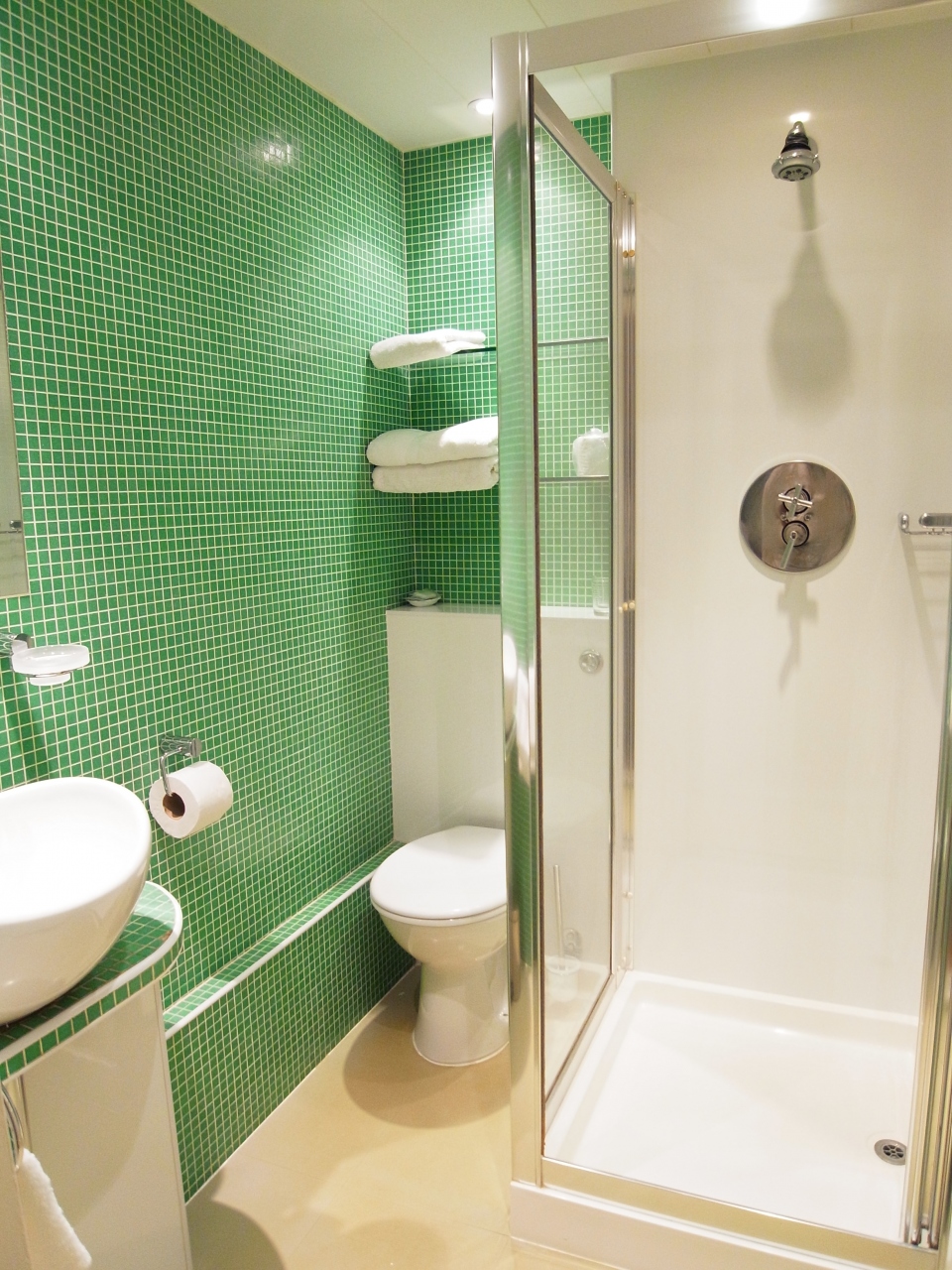 バス・トイレは、バスタブがないのが残念ですが、この値段なら仕方ありません。バスルームは緑と白で統一されていてとても可愛かったです。アメニティも毎日補充してくれます。