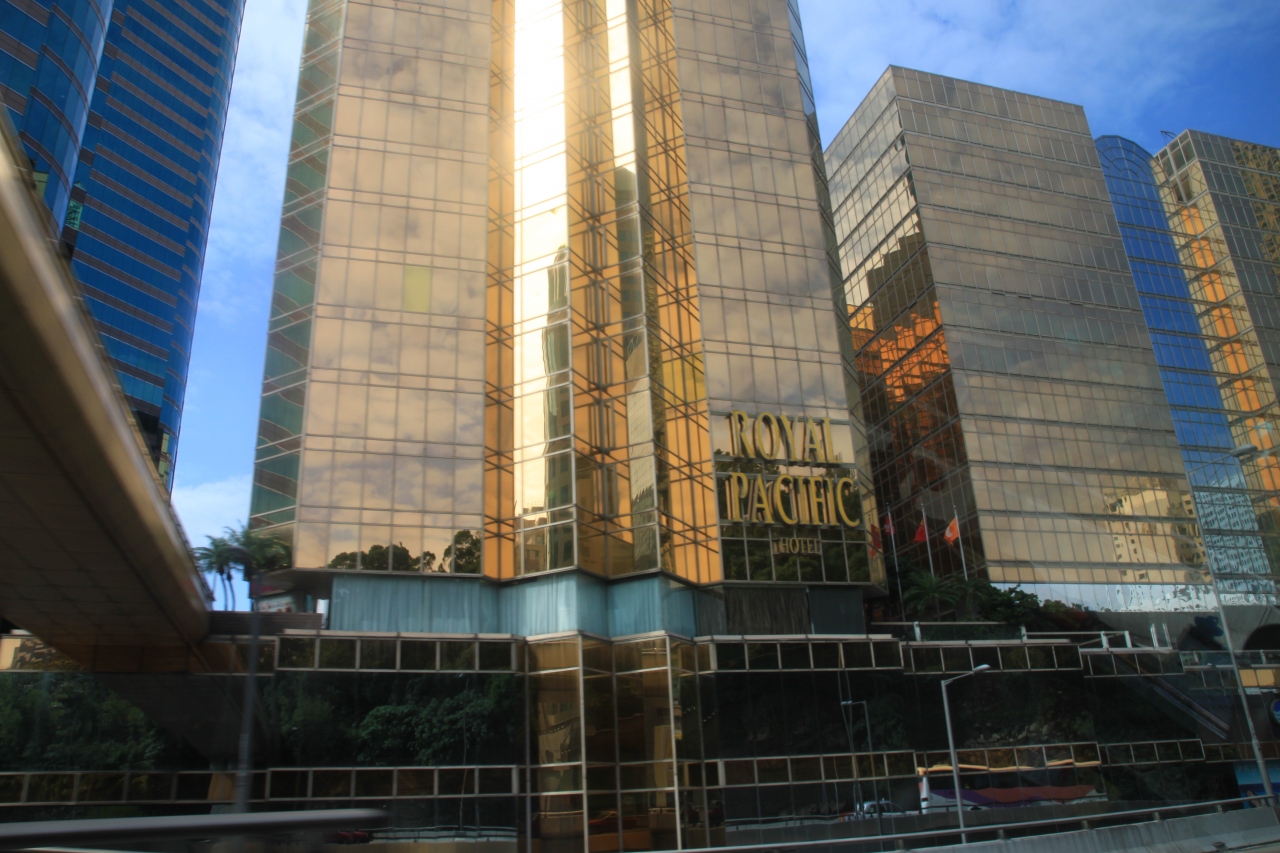 カオルンのビクトリア湾から少し入ったところにあります。そのため、ビクトリア湾の眺めはないですが、その分料金は安いですね。外観じは、金ぴかでなんとなく汚れていて落ち着かない感じのホテルですね。施設もちょっと老朽化していて、部屋のバスルームも若干水臭いので、あまり好きなホテルではありません。交通の便はいいですが、前の道はいつも渋滞しています。