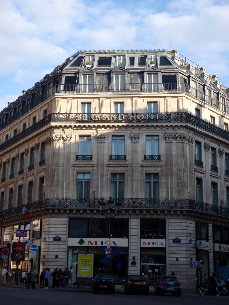 オペラ・ガルニエのすぐ横、部屋からもすぐ目の前から望めるため泊まりました。このホテルは結論から言うと、立地、部屋からの景色、ホテル外観からロビーは非常に豪華ですが、サービスなどは今一、とても500ユーロも払って泊まったホテルとは思えないレベルでした。一番がっかりしたのが連泊したのにシーツがかえられておらず、バスタオルこそ新しくなっていましたが、顔や手をふくタオルはそのまま、コップなどもそのまま、レセプションに言ってようやく新しいものにかえてもらったのに、翌日またそのまま・・・もう苦情を言う気も失せました。正直すぐ向かいのスクリーブにも宿泊したことがありますが、サービスはだいぶそちらの方がいいと思います。ただし、オペラ座を部屋の窓からどうしても見たい人はこのホテルに。(チップ1ユーロじゃ少ない? にしてもこのレベルでは・・・チップはちゃっかり持って行ってるわけだし。)