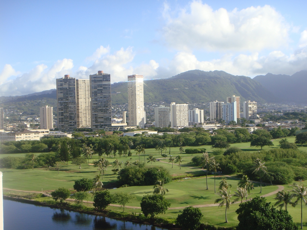 角部屋だったので、アラワイ運河の反対側の住宅街やワイキキの街の夜景がきれいでした。