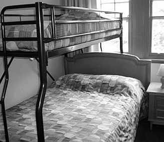 シャワー、トイレつきの二人部屋を利用しました。(写真の2段ベッド)