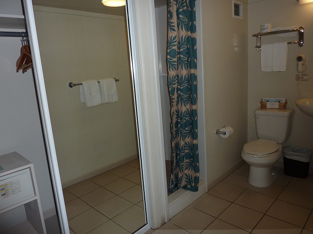 部屋のタンスは大きな引出しが4つ、バスルームには大きなクローゼットもあり、収納力はバッチリ
