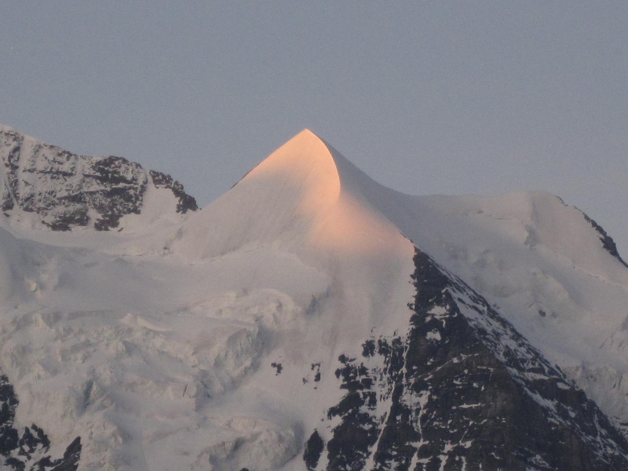 標高2,239mにあり、アイガー・メンヒ・ユングフラ三山が大パノラマで間近に迫ります。早朝の朝焼けの景色は、ツェルマットに劣らず素晴らしかったです。