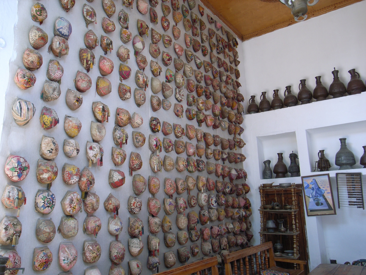 また、骨董品のようなお皿や帽子や水差しなどセンスよく飾り付けられています。