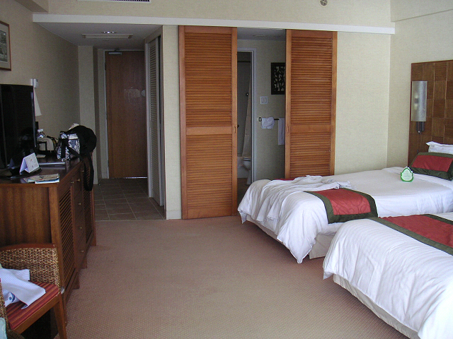部屋はさすがに広く、バスローブ、スリッパ付き。今回はタモン湾側で、バルコニーから真っ青な海を見ながら朝食をとり、優雅な時間を過ごしました。水まわりは古いですが清潔でした。コンシェルジェもレストランのスタッフにも日本人がいるため、やはり日本語を使いたい人、家族連れには最適なのではないかと思います。