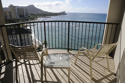 お部屋や浴室はデザインがちょっと古い感じでしたが、バルコニーから見えるホテルのプール、ワイキキ・ビーチやダイヤモンド・ヘッドの眺めはよし。
