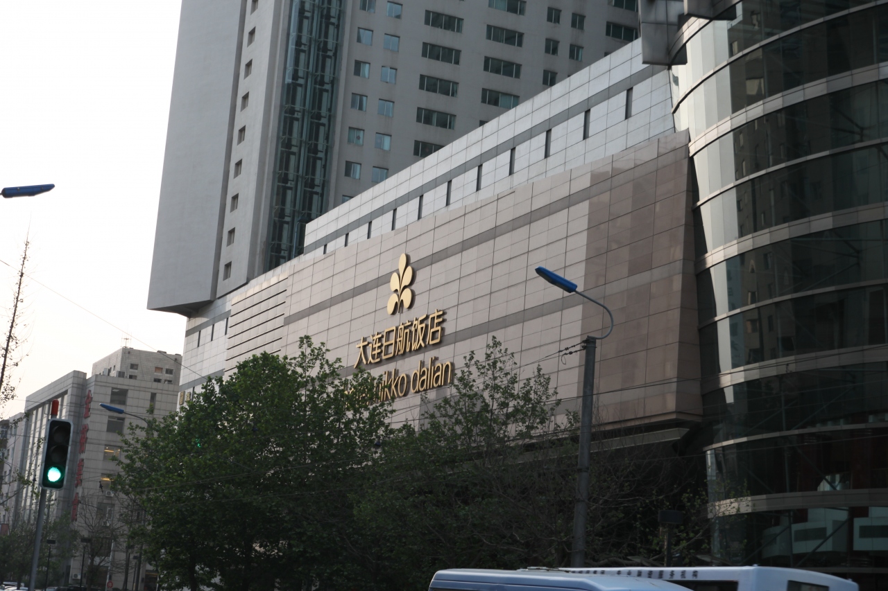 大連駅から少し入ったところにあります。まあ歩くと10分ぐらいかかります。5つ星ですが、ロビーは狭く、ツアー客でごったがえしています。スイートにとまりましたが、湯フロアがウッディでいいのですが、あまり豪華さはなかったです。ただ、スイートだと上のラウンジで朝食がとれるのはいいですね。2階のレストランでも朝食はバイキング形式でとれますが、狭くて混んでいるし、あまりおいしくなかったです。まあ4つ星くらすのホテルですね。