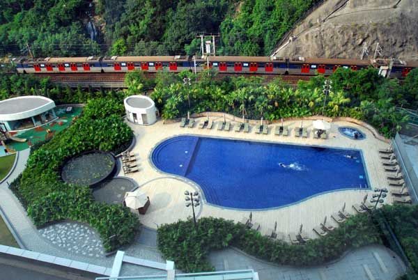 香港島や九龍の繁華街に泊まることが圧倒的に多いですが、郊外のホテルに滞在して、地元の人のように鉄道やバスを使って繁華街へ「通う」旅も悪くはないと思います。どちらかと言うとリピーター向けかもしれませんが、ホテル代も相当下がりますし、ある程度のグレードのホテルと言うのであれば、ここは適当かもしれません。ホテルの部屋も同じクラスでも部屋の広さがゆとりがありますし、滞在費も半分くらいで済みます。レストランやジム等も十分な設備が整っていました。山側の部屋は駅や東鉄線の列車が見えました。