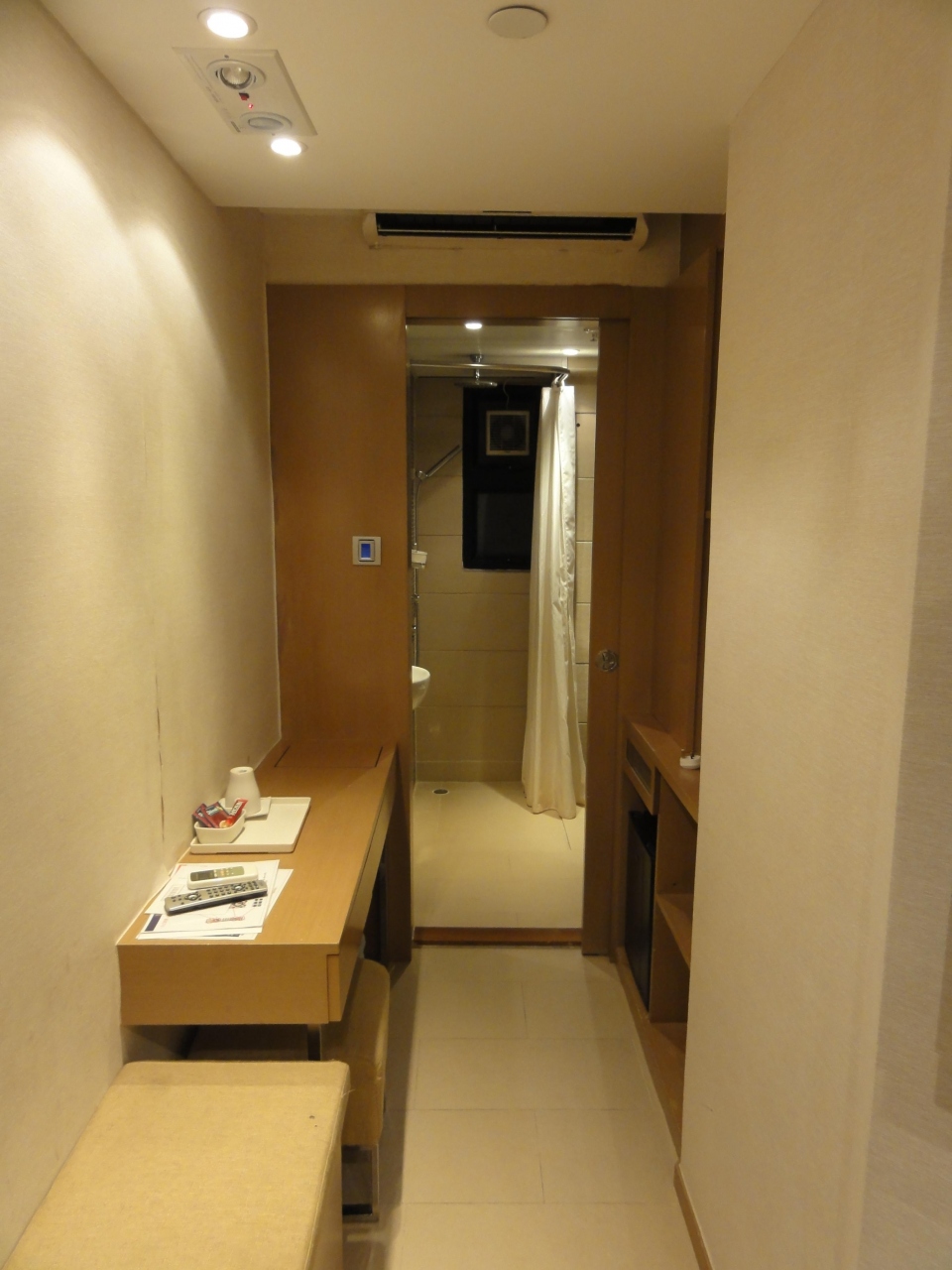 立地は素晴らしいのですが、部屋がとにかく狭い。笑えるくらい狭い。部屋の形はまちまちですが、どの部屋もとっても狭い。面積のほとんどをベッドとバスルームに占められています。大きなスーツケースを広げるスペースがありません。