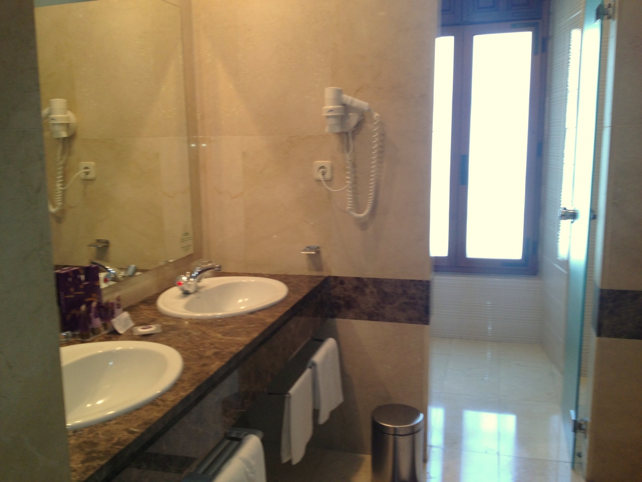 お勧めのホテルです。サンティアゴデコンポステラの中心街大聖堂にある広場に面していてどこに行くにも大変便利でした。お部屋も豪華でゆったりとした広さがありベッドも広く巡礼路を歩いてきて疲れていたので大変良い休養になりました。ホテルのパティオはすばらしく廊下や階段踊り場などは大変すてきな調度品、絵画、家具が置かれており目の保養になりました。朝食はバイキング形式でしたが沢山の種類があり、とても美味しくいただきました。お値段以上のホテルだと思います。