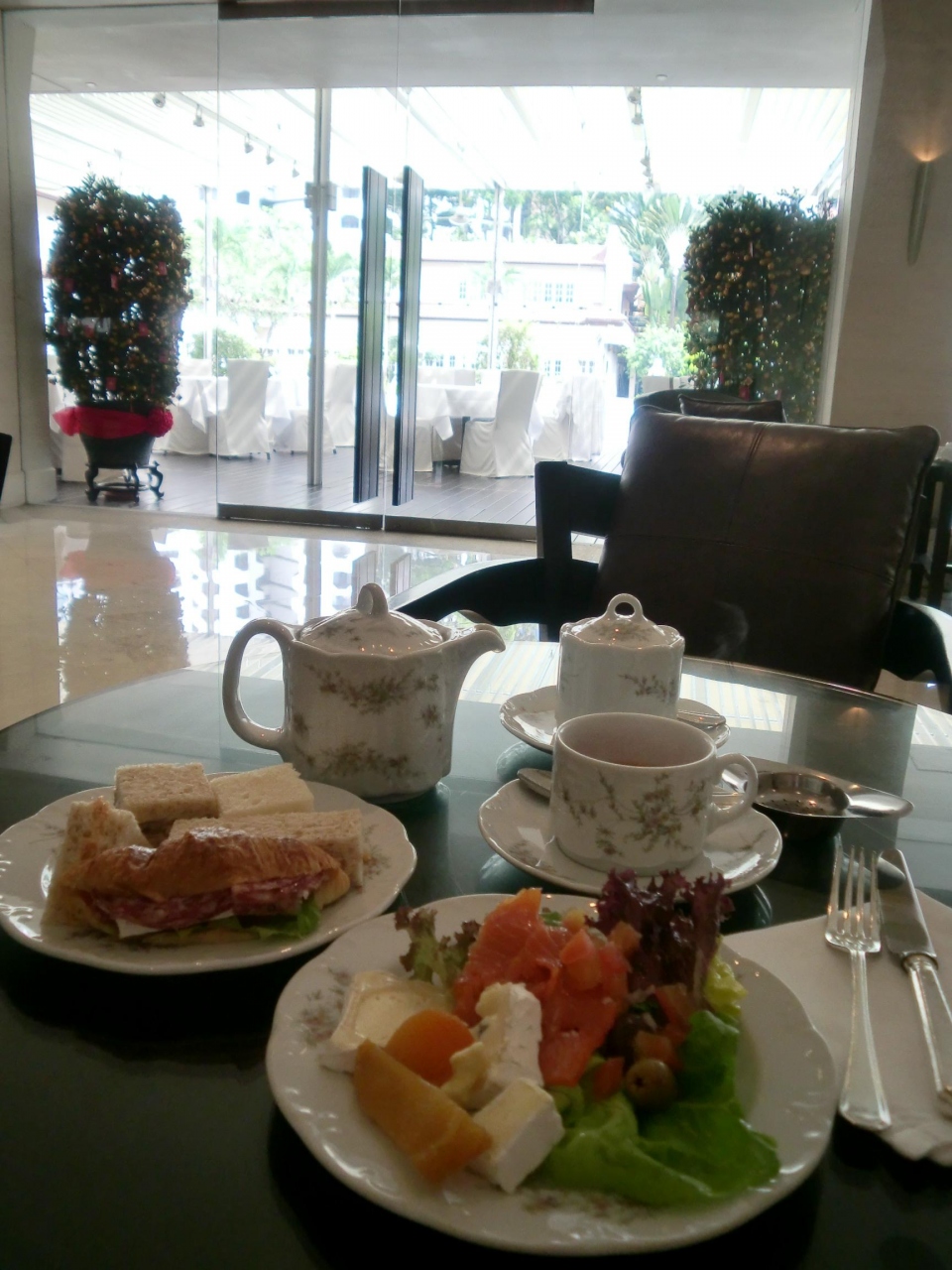 グッドウッドパークホテルに宿泊の際は、1階のラウンジでハイティーを楽しみましょう。ビュッフェスタイルで、サンドウィッチ、チーズ・ハム類、スウィーツ、フルーツなど、種類も豊富です。お茶は、2種類を選ぶことができます。私は一人でしたが、特に浮ませんでした。ドレスコードもさほど厳しくなさそうです。周りの方は、スマートカジュアルで来ておられました。 こちらでハイティーをなさる時は、ランチをスキップしても良いでしょう。 38ドル+10%税+7%税 (約2700円)
