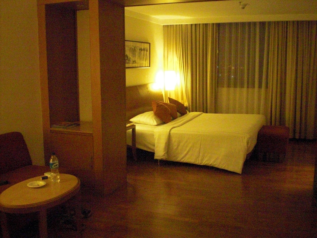 マンガドゥアスクエア(WTC)に隣接した巨大なホテルです。ここでは無料のWIFIが使用できる。チェックインの時にID、パスワードを教えてくれる。部屋は広々としていて非常に快適でした。また入口を出て両側には中華料理の屋台が多く出店していて、夕食には困らなかった。夜の10時頃に終わりとなるので、それまでに食べることをお薦めします。ホテル前の幹線道路は満潮時には冠水してしまうので片道3車線が2車線となり、慢性的な渋滞を引き起こしていました。夕方の帰宅ラッシュ時の移動には余裕をみて行動することが必要でした。