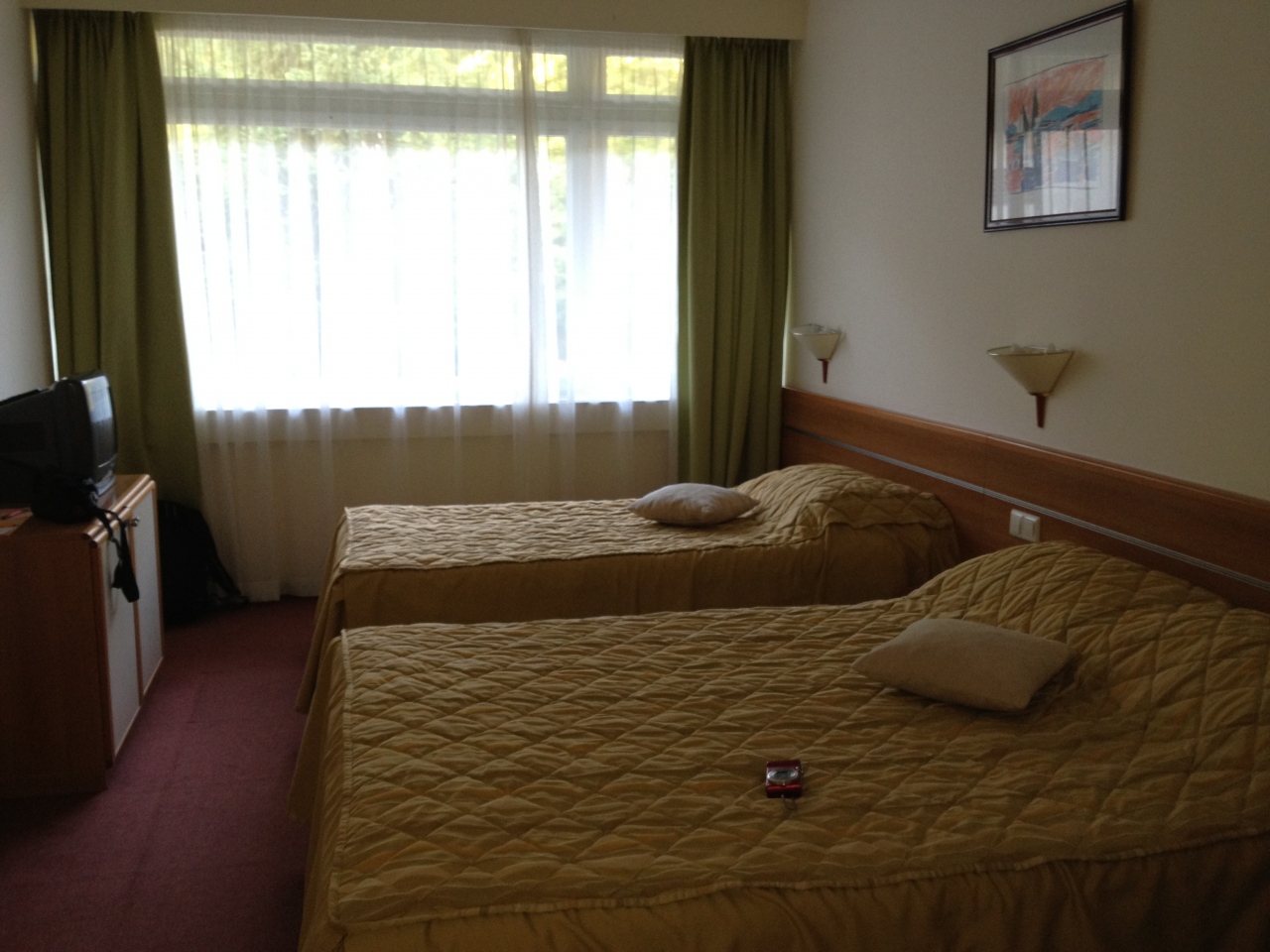 部屋は、普通? 山側ツインの部屋でしたが、なぜかベットの大きさが違う?