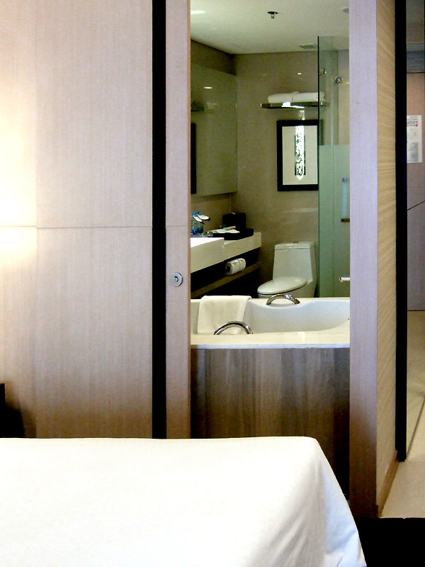 BTSアソークから5分ほどの好立地。比較的新しい米系ホテルで、クールなデザイン&清潔。シャワーブースあり、アメニティは標準的、無料のボトルウォーターは部屋とバスルームに各々2本ずつあった。Wi-Fi無料&朝食付きのプランだったが、食事は種類も多く美味しかった。スタッフもキビキビしていて、好感が持てた。