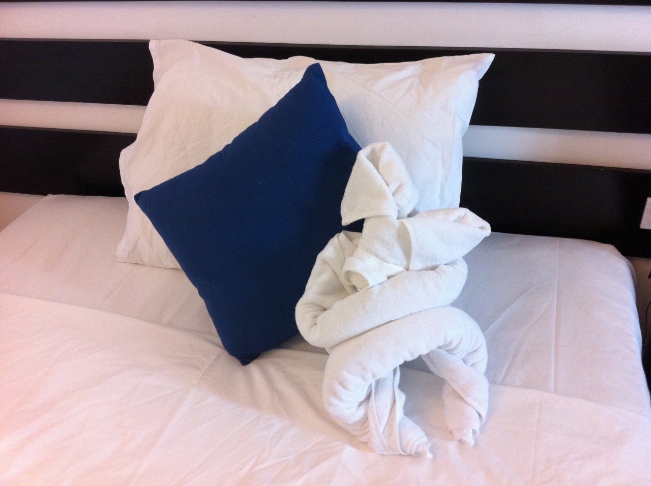 ホテルのホームページで見た部屋の写真がいい感じだったのでここに決めたのですが、期待しすぎたせいか(写真通りの部屋でしたが)少し狭く感じました。日替わりでタオルを動物の形にしてベッドの上に置いておいてくれるので、そういうのが好きな人は楽しめると思います。