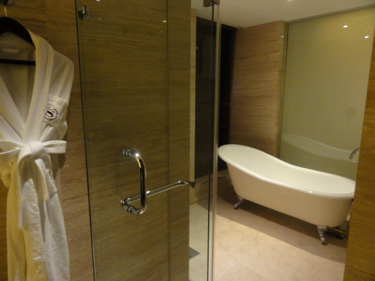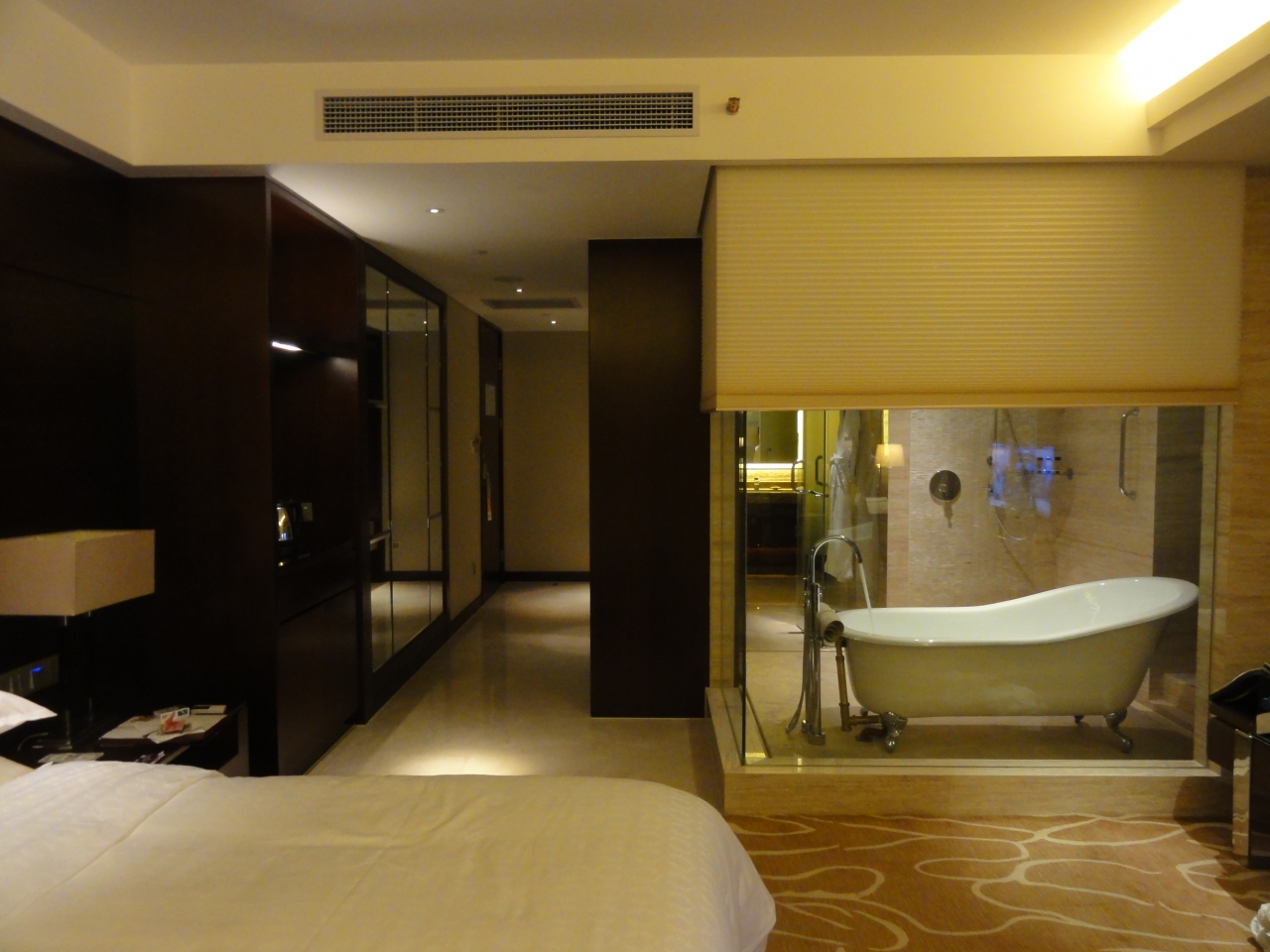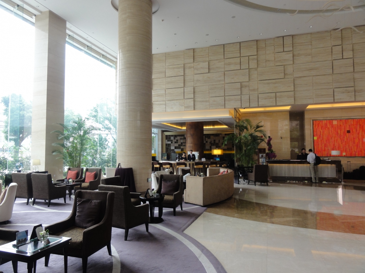 上海万博を期に新しくできたホテルなのでしょう、どこもピカピカで気持ちいい。ロビーは広くはないが天井が高く、採光もよくて明るい。高層の建物でエレベーターも早くてスムーズ。部屋はシックでモダンな感じでベットルームも広い。バスルームも猫足のバスタブとシャワーブースは独立してあり、ベットルームからガラス越しに見えて、広々と開放的。トイレは独立してある。申し分なし。朝食のビュッフェも種類が多い。地下鉄駅にもすぐ目の前で交通アクセスも非常にいい。又利用したいホテルです。