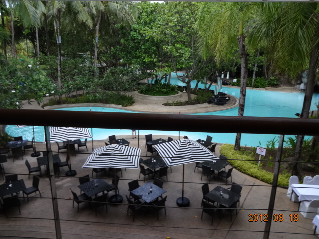 朝食はプールビューで品数も多く、お粥などいいダシきいてました。