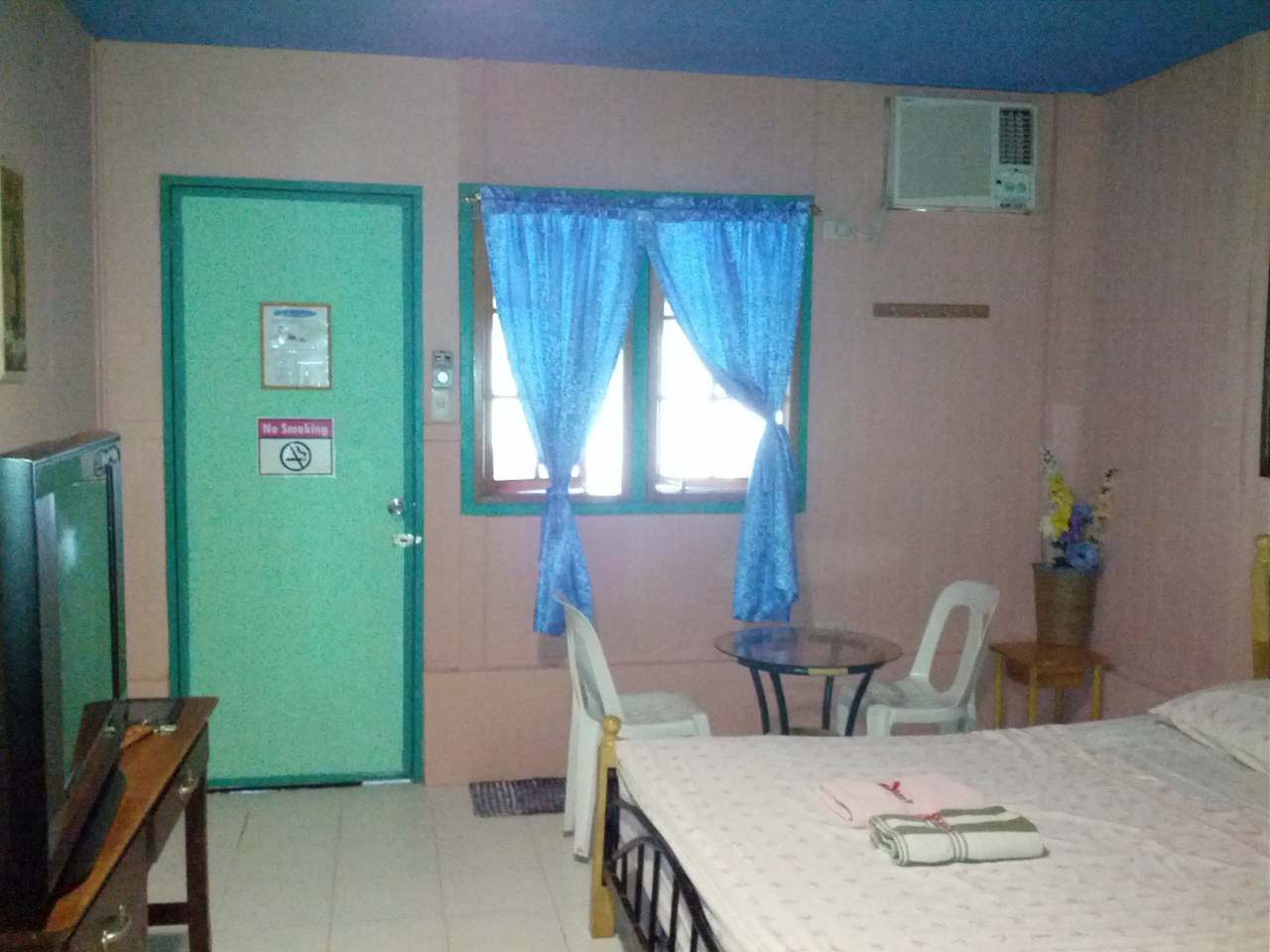 部屋はビーチフロントのエアコン付きの部屋にしましたが、ドアや窓の隙間から潮風が忍び込んできて、なんとなく部屋がジメッとしていました。テレビとセーフティーボックスは部屋にありました。