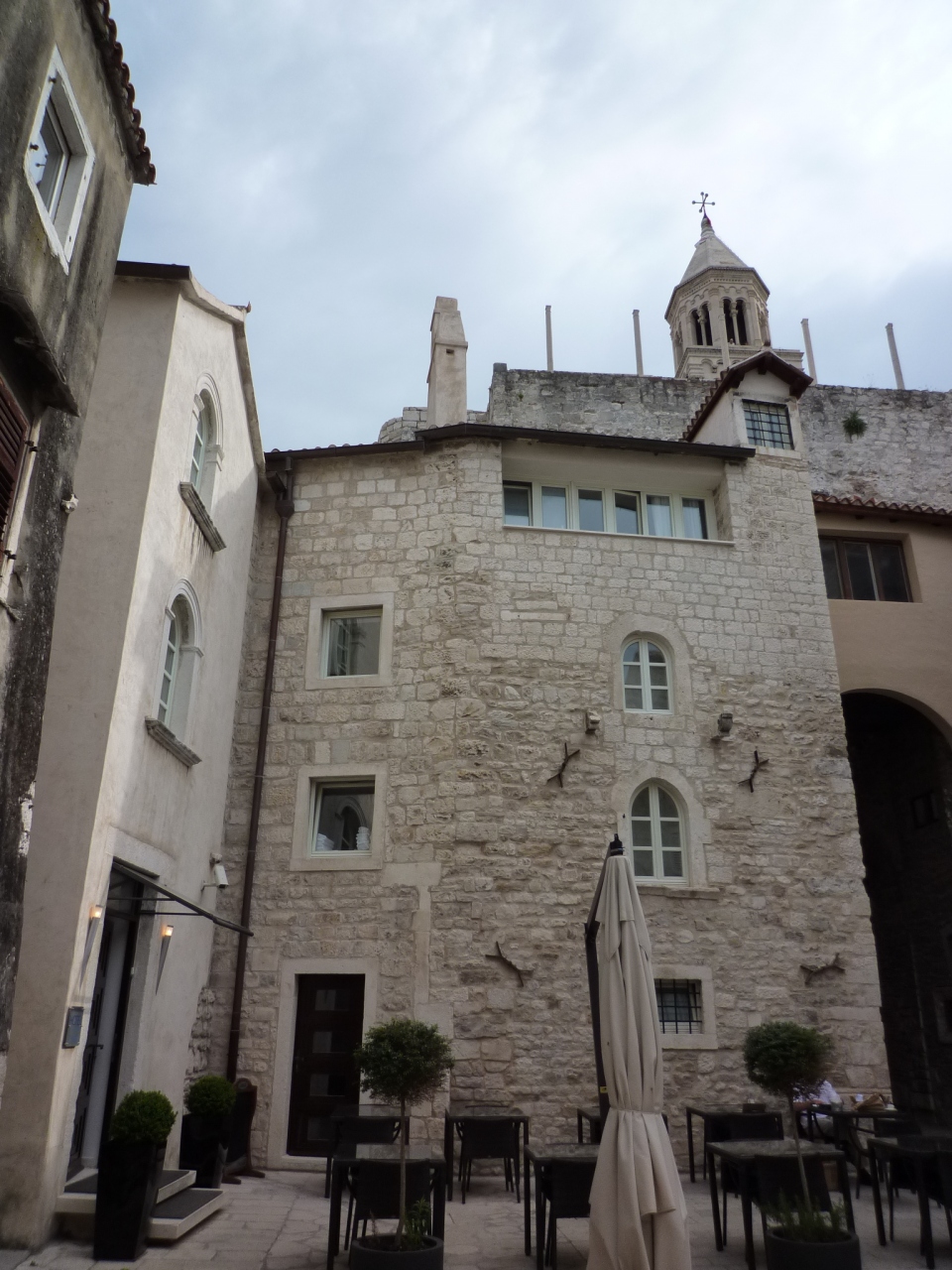 部屋数15という小規模さと旧市街の中にあるというホテルということで関心を持ち 予約をしました。そこは まさに遺跡の一部となっているホテルでした。観光客が見上げるカテドラルの裏側にあり 最初は博物館の入口かと思い 通り過ぎたほどでした。中も大変調和がとれていて 壁は当時の遺跡の一部が残されていながら近代的で 清潔な施設でした。部屋の中は静かですが 時折 鐘の音 聖歌隊の声などが聞こえ 雰囲気抜群でした。当然 観光にも便利で また泊まりたいと強く思わせるホテルでした