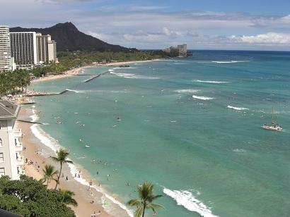 眼前には美しい海が一面に、左側に視線を移すとダイヤモンドヘッド、やや後方にハイアット、眼下にはこのホテルの象徴でもあるバニヤンツリーを見ることができました。