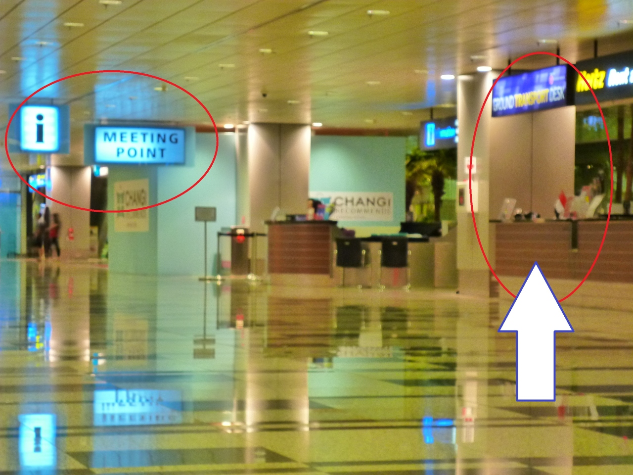 ?バゲージクレームを出たら、同じフロア中央部にあるインフォメーションを目印に向かう。(写真のiのマークが目印)
