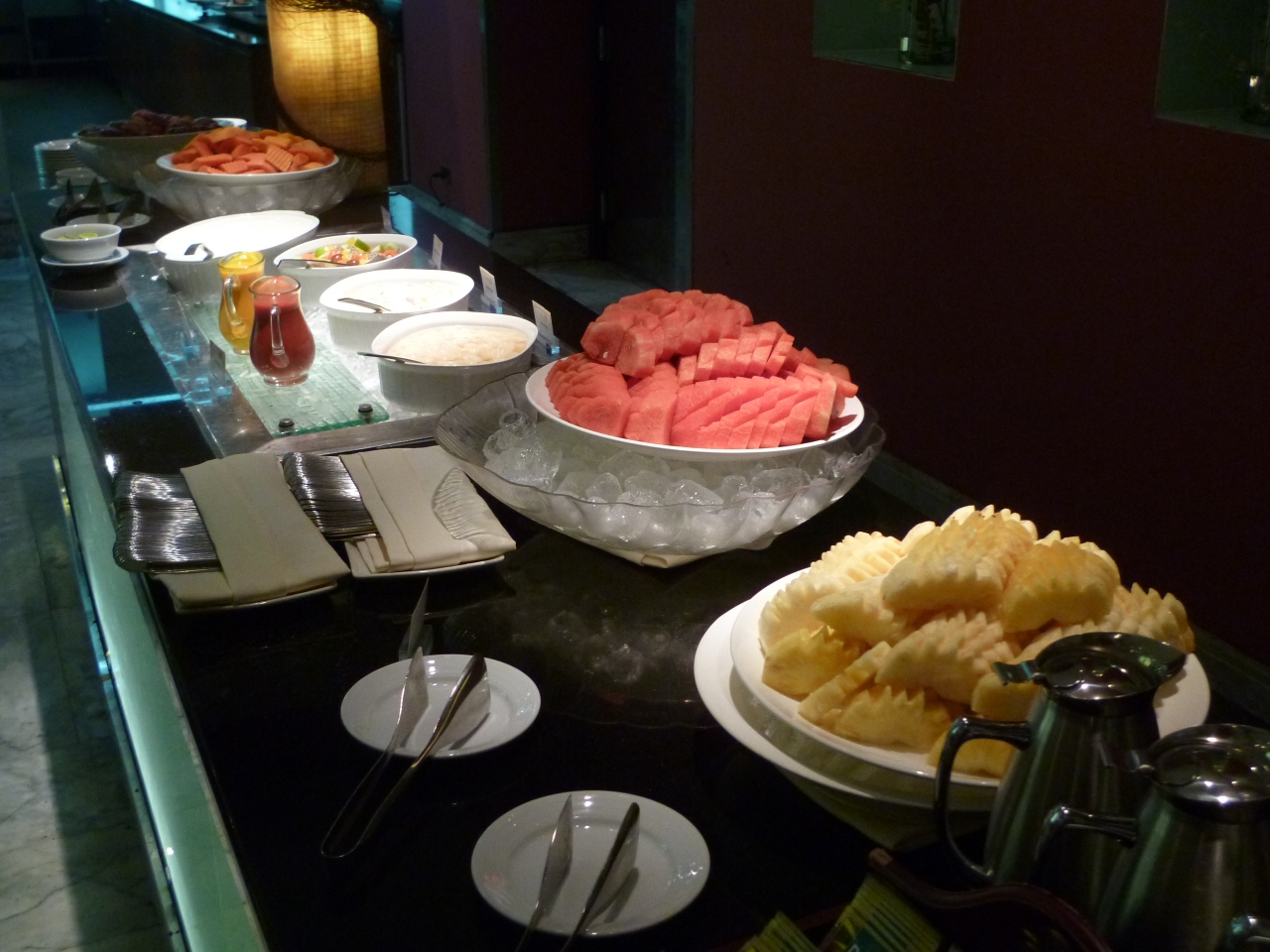 聞き間違えたかしら~?とか思いつつ、ロビーに行ってみたら、またびっくり!ブッフェ形式だけど、種類の多さ、パンの多さに秀樹~感激!って感じで、超おすすめでし。機内食なんか食べれないほど食べまくりました。