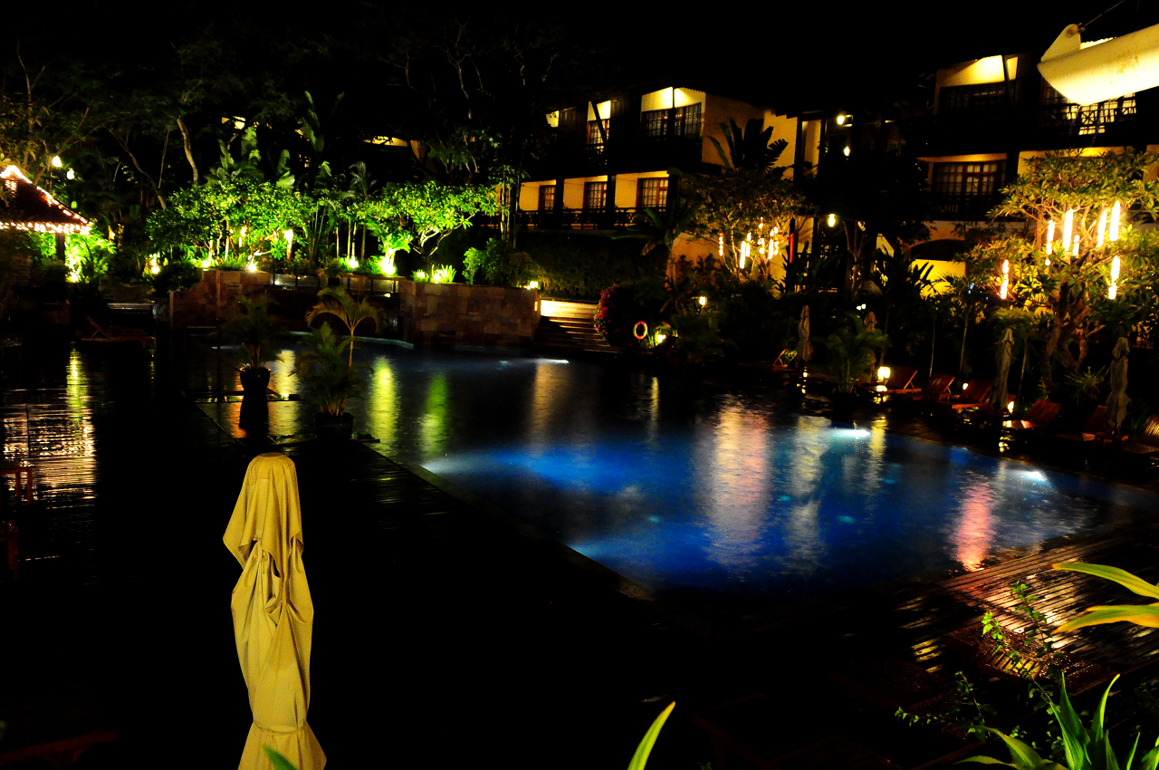 高級ホテルはシェムリアップの市内中心部から離れていることが多いけれども、このホテルは5つ星だけれども市内中心部にあります。2泊で15000円しないくらい。