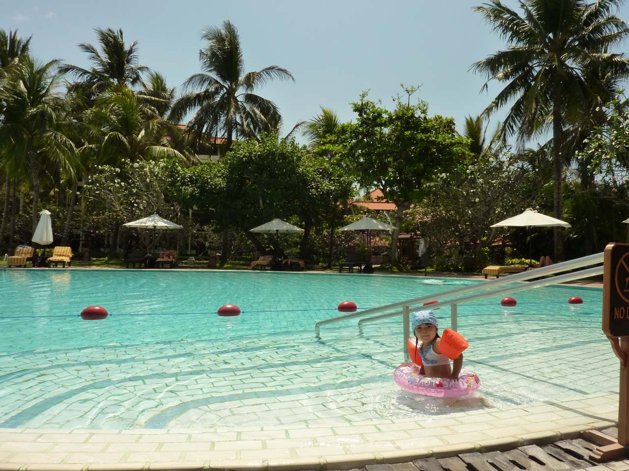 子供用のプールが大人用のプールのとなりにあります(小さいですが)。深さは大人のひざくらいです。娘は、大人用のプールの入口の階段になっているエリアが気に入ってキッズプールよりもそちらでよく遊んでいました。海の近くに海に続いたように見える新しいプールもできていました。こちらはとても深くて私でも足がつかない深さで子供には不向きでした。