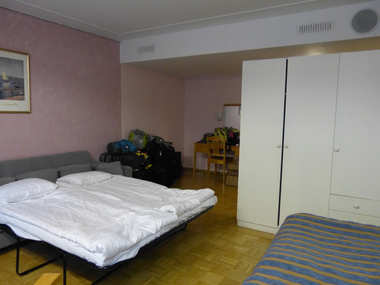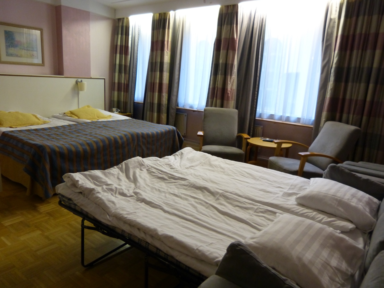 でもちょっと納得がいかなかったので、他に今日空いている部屋はありませんかと聞いたら、他にも同じ値段で広い部屋と、わたしが予約したと思っていた、ベッドルームと、リビングが別にあるファミリールームが、一日に付き40ユーロプラスであると言われて、早速別の部屋を見に行きました。