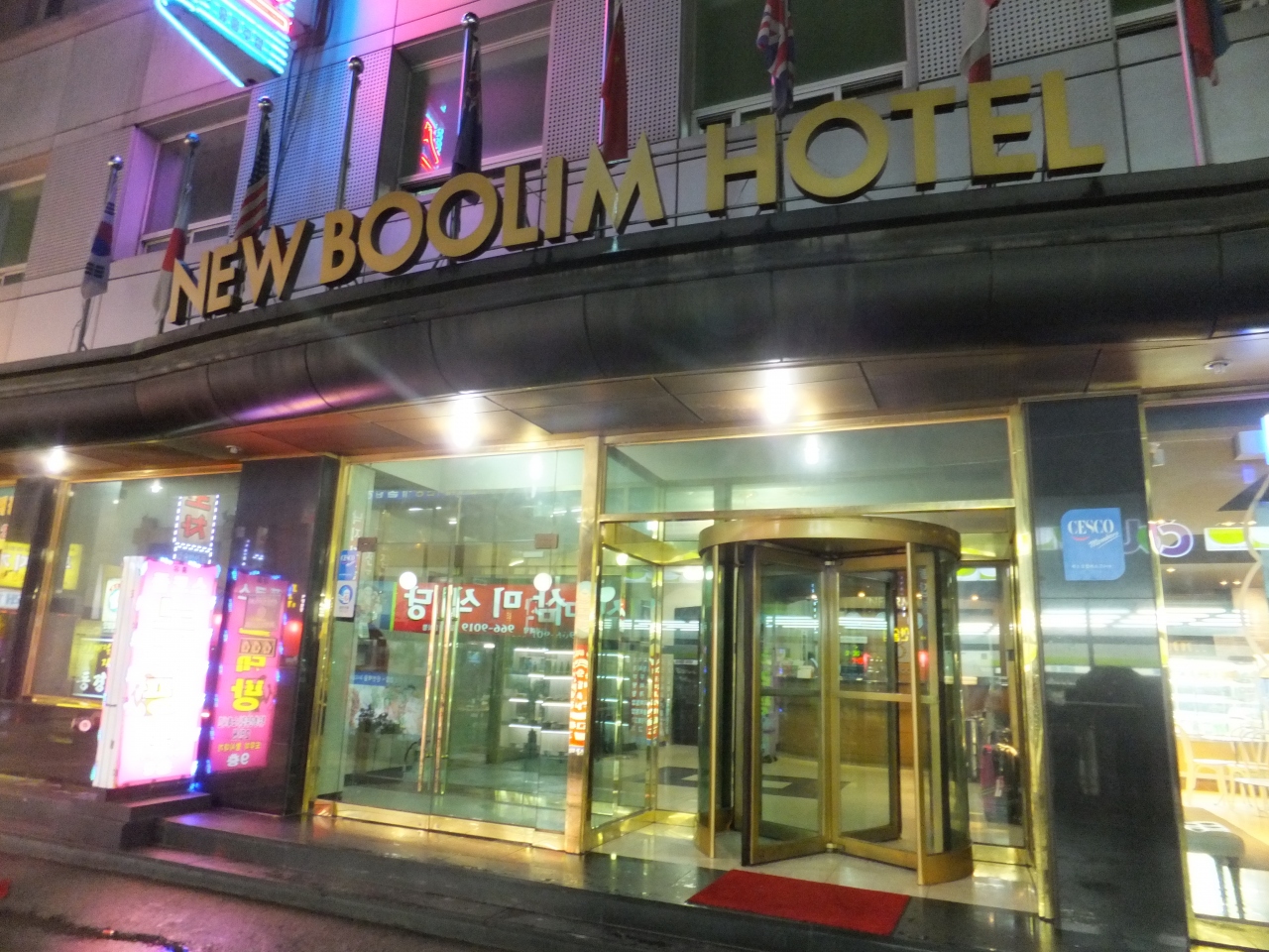 駅近で目の前がコンビニ、近くにロッテマートがあり立地はとてもいいです。東大門へも地下鉄乗り換えなしで行けるので便利です。ただホテル裏は歓楽街のようで非常に怪しい雰囲気です。