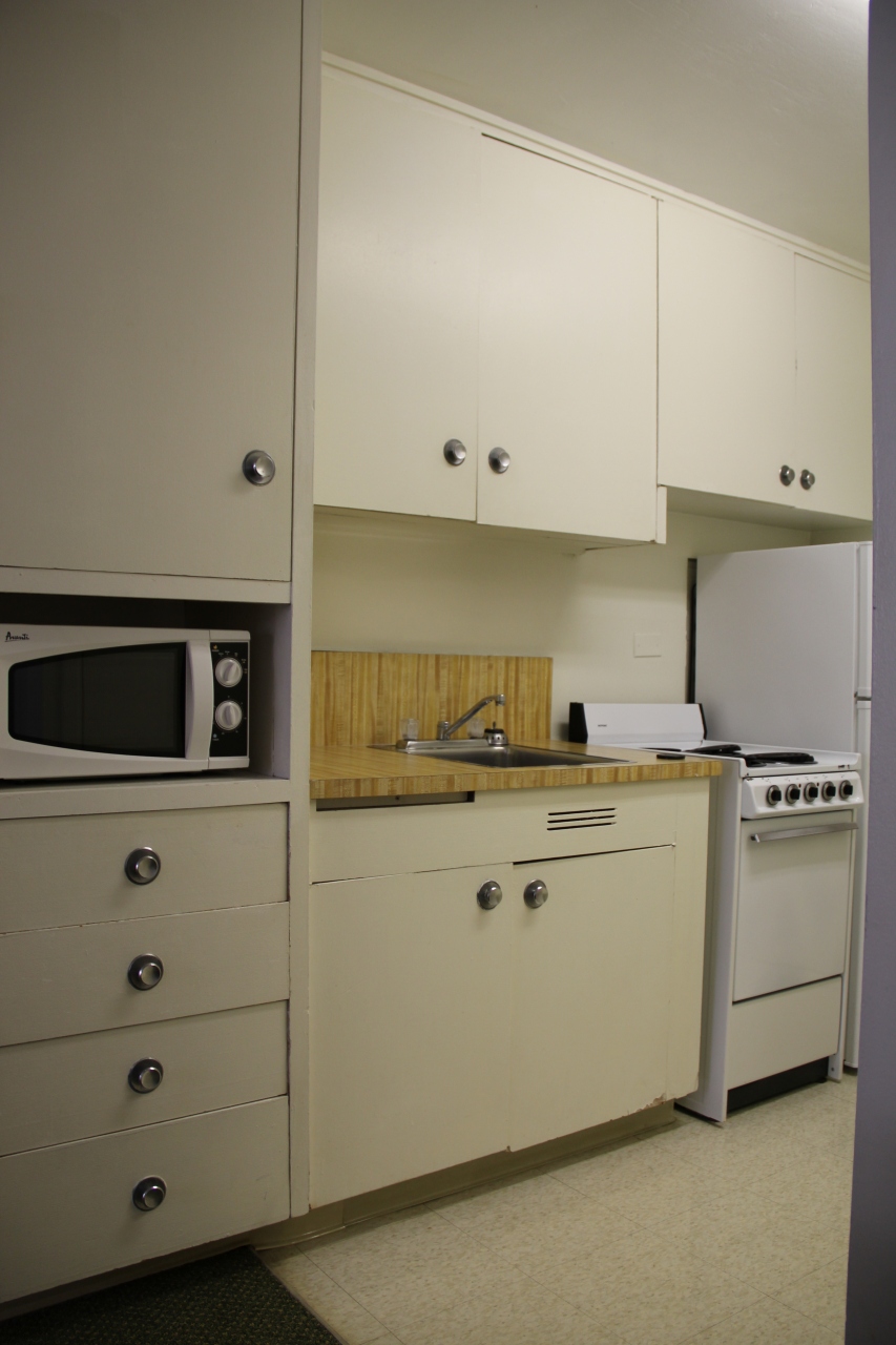 部屋は大きめの冷蔵庫とコンロ、食器、電子レンジなどもあり一通り生活出来ますし、スーツケース2個広げられるほどのスペースがありました。