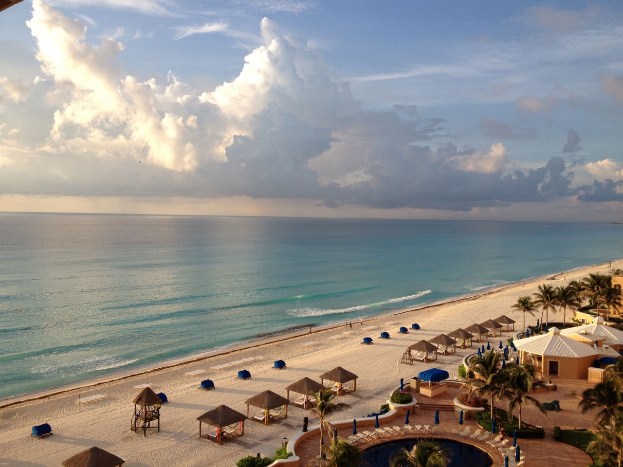目の前のビーチは、東側のホテル群はどこも同様ですが泳ぐには適しておらず、波も高い日がほとんど。海草が流れ着いていたりして、遠目にはターコイズブルーが美しいのですが、クリスタルブルーのビーチで泳ぎや海水との戯れを楽しむのであれば、イスラムヘーレスのプラヤノルテなどへ足を伸ばすことが必要でしょう。