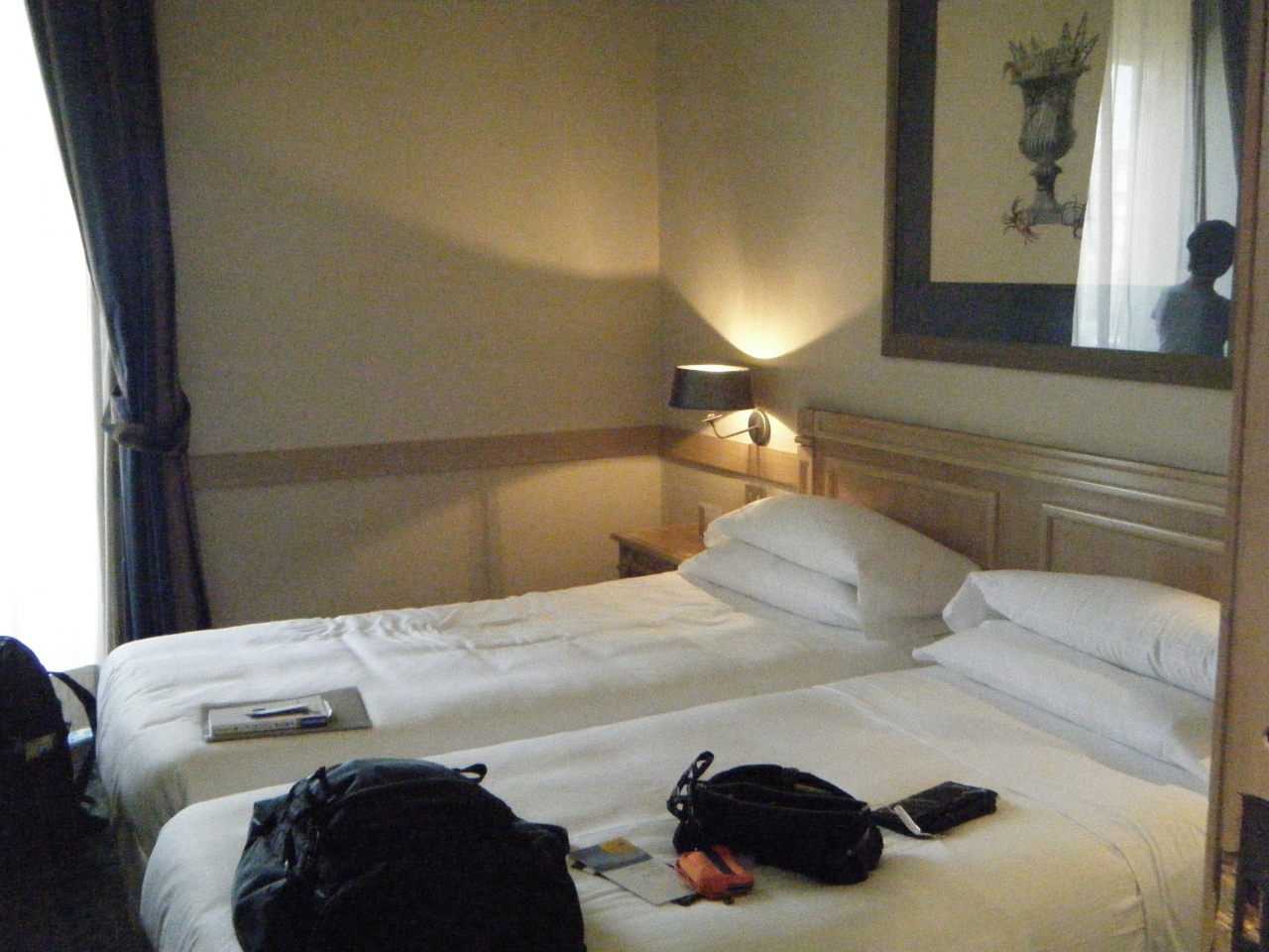 駅から見えるほど近いが、汚い上に信号も無い場所を通って行くホテル。