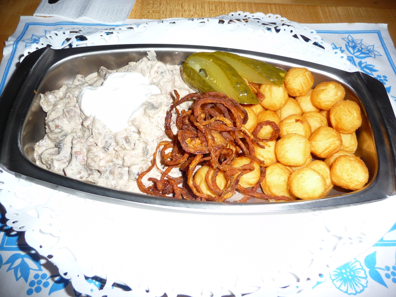 ホテル内ビアレストランでボルシチとビーフストロガノフを食べましたが、