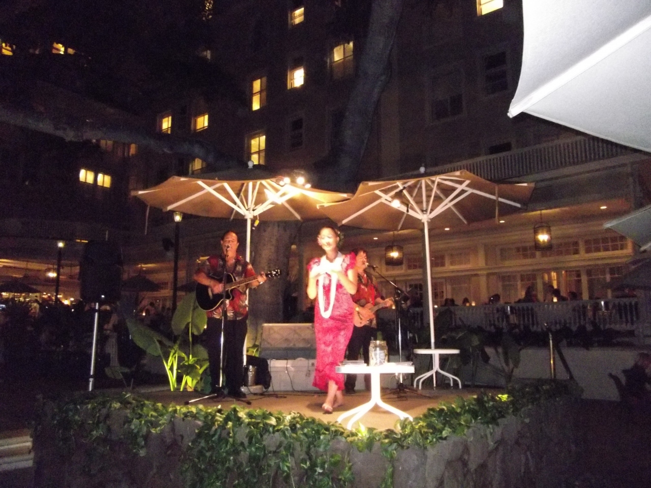 バニヤン・ベランダは敷居が高いけど、こちらはカジュアルにフラショーを楽しみながら簡単な食事ができ私のホノルル一のお気に入りです。