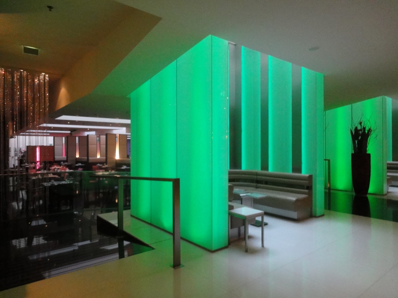 「おもしろいホテルだわ!」と大喜びの私。エントランスやレストランエリアをはじめ、各ルームのインテリアやコップやタオルウォーマー等々に至るまで、斬新でおしゃれな遊び心満載がゴロゴロあり、刺激を受け、大いに気に入った私でしたが、娘が言うには、コップは斜めデザインで扱いにくい、タオルウォーマーはデザイン重視のせいか大きすぎて邪魔とか、ぶつぶつ。。。好みは人それぞれですね。
