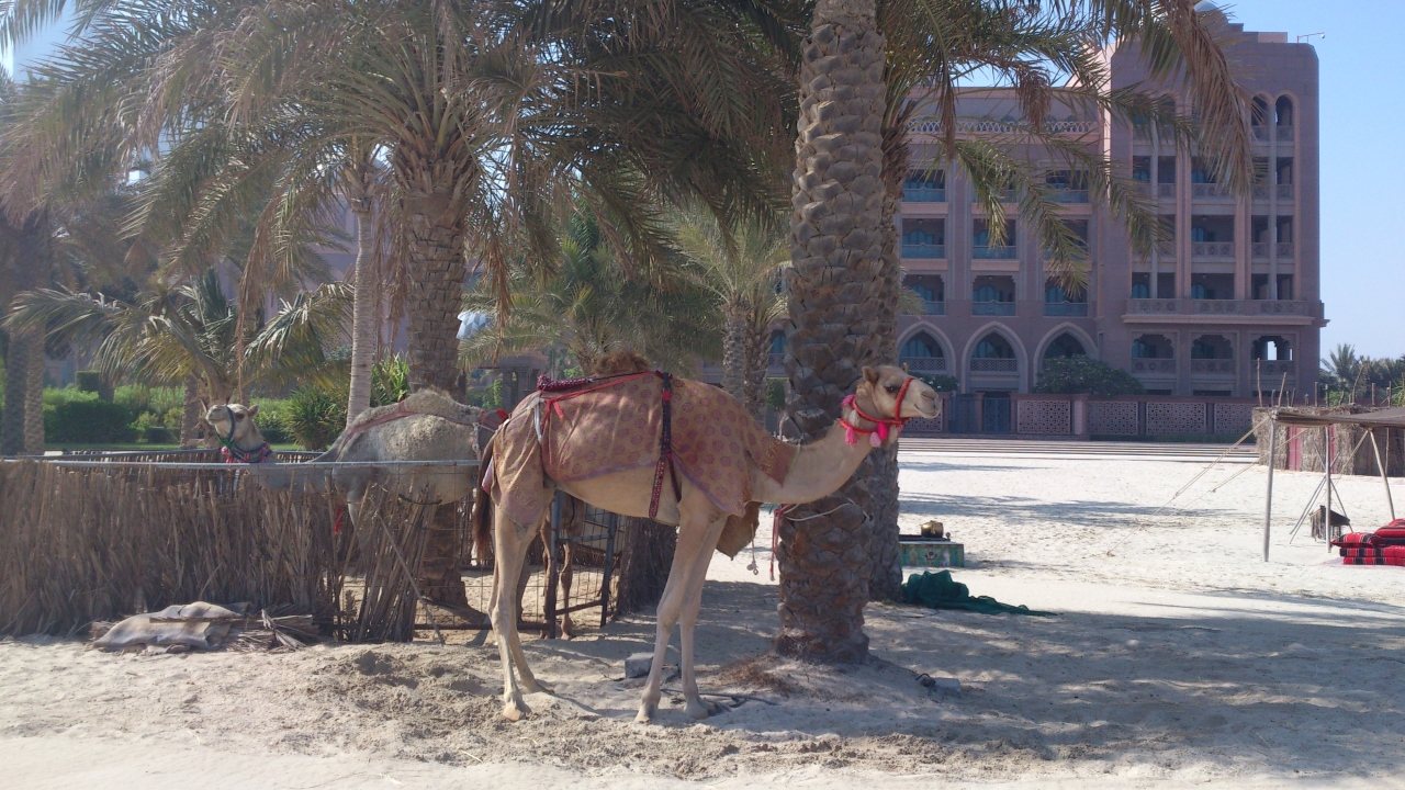 ビーチにはラクダがいて乗せてくれました。気温が40℃を越えていたので人はいませんでしたがプールでは新聞や雑誌を読んだりしてました。