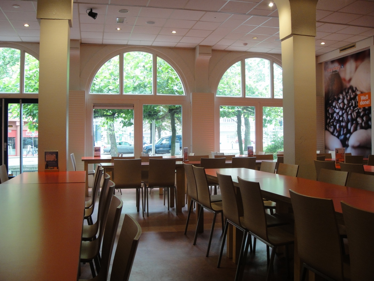 朝食込みで、内容はわりと充実していました。パンが4種類と、ゆで玉子、ハム3種類、チーズ、シリアル、コーヒー、ジュース、りんごが出てきました。時間は7:30〜9:30(日曜は8:00〜10:00)。オランダらしく、注意書きに?ソフトドラックは厳禁です?と書いてありましたが、老夫婦やファミリーも利用しており安全な印象でした。