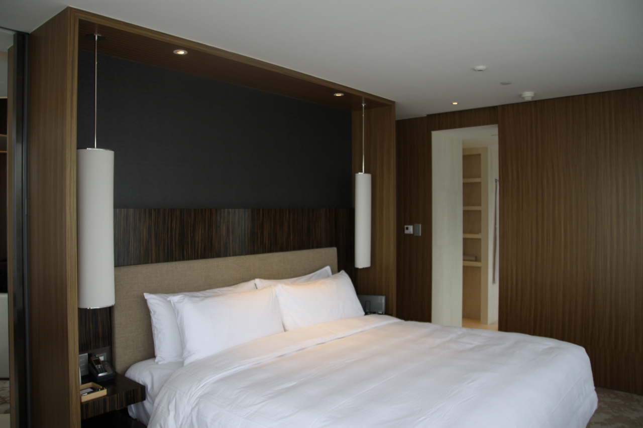 一番高いカテゴリーの部屋に泊まりました。円形のソファーがあり、クローゼットにいくには、なんか衝立みたいなものを乗り越えてゆくか、バスルームのほうから回るか、ちょっと使いにくい構造でした。でも、バスルームは窓からビクトリア湾がみえ、まあきれいでしたが、ちょっと離れているため絶景とまでは言えませんでした。
