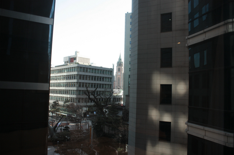 ちょうど角部屋でしたので明洞聖堂がビルの間から見えていい感じでした^^