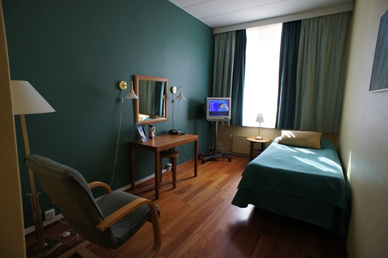 シングルルームは、シングルベッドが1つ、机と椅子が一つずつといった造りでした。