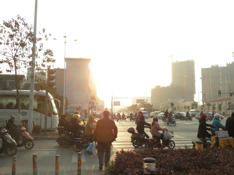 朝、近くの道路を歩いていたら、中国の通勤風景に出会ってカルチャーショックを受けました。