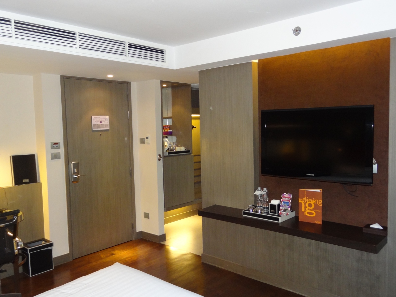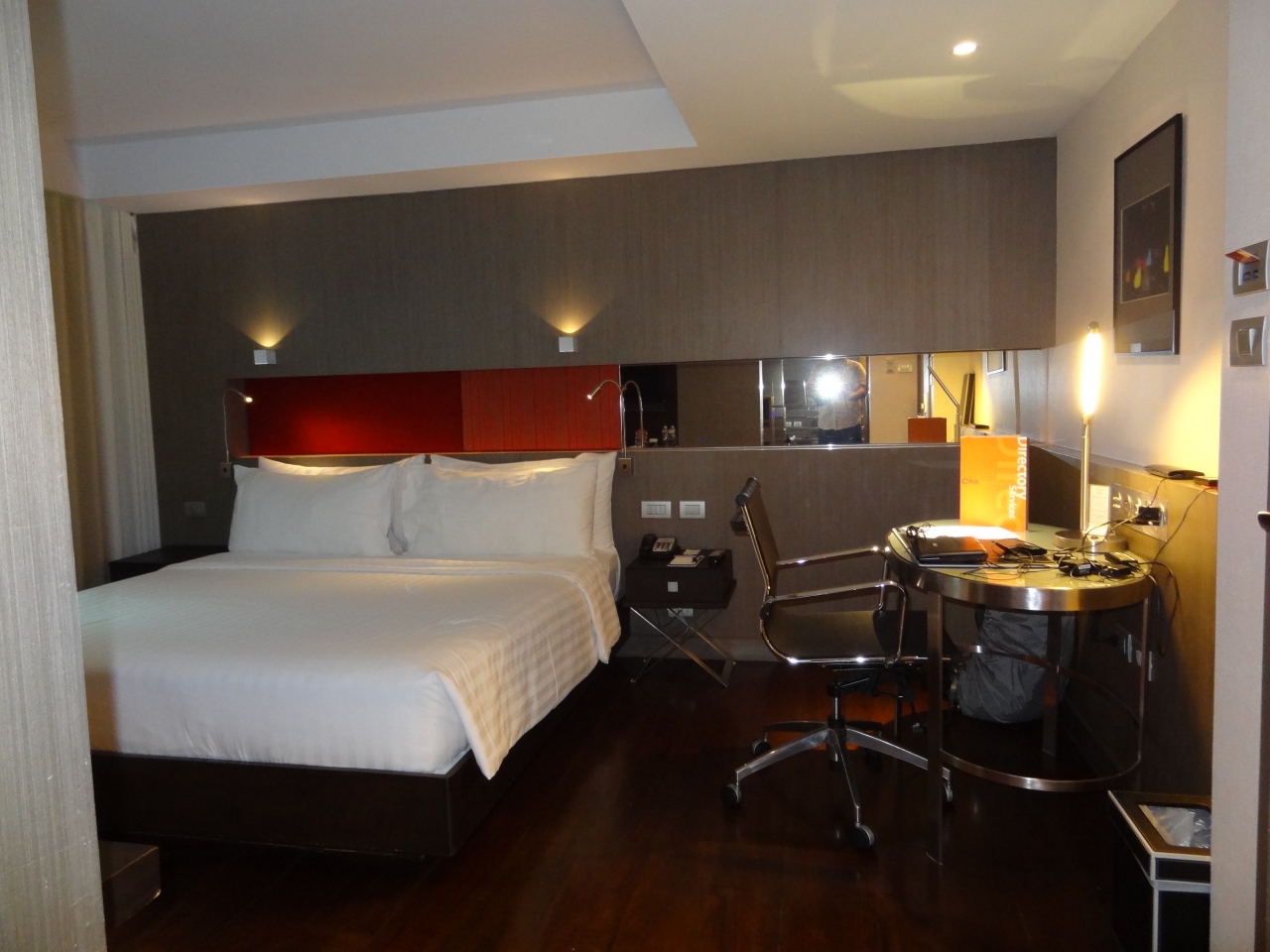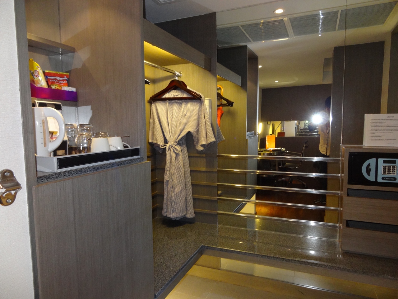 場所はSoi22を入って200mほどで、BTSの駅までは若干距離はあるが他は便利。ホテルは、設備に関しては特にリクエストがないくらい。若干、隣室の水周りの音が響いてくるのが気になるか。部屋の温度設定が、24℃だと寒すぎ、25℃だとエアコンが停止して暑過ぎるのは面倒。それとWiFiは、このクラスのホテルにしてはちょっとストレスを感じるくらい遅いので、仕事での利用を考えている人には向かないかも。個人的には、レセプションの態度の悪さが気になったので、次回以降の利用は?